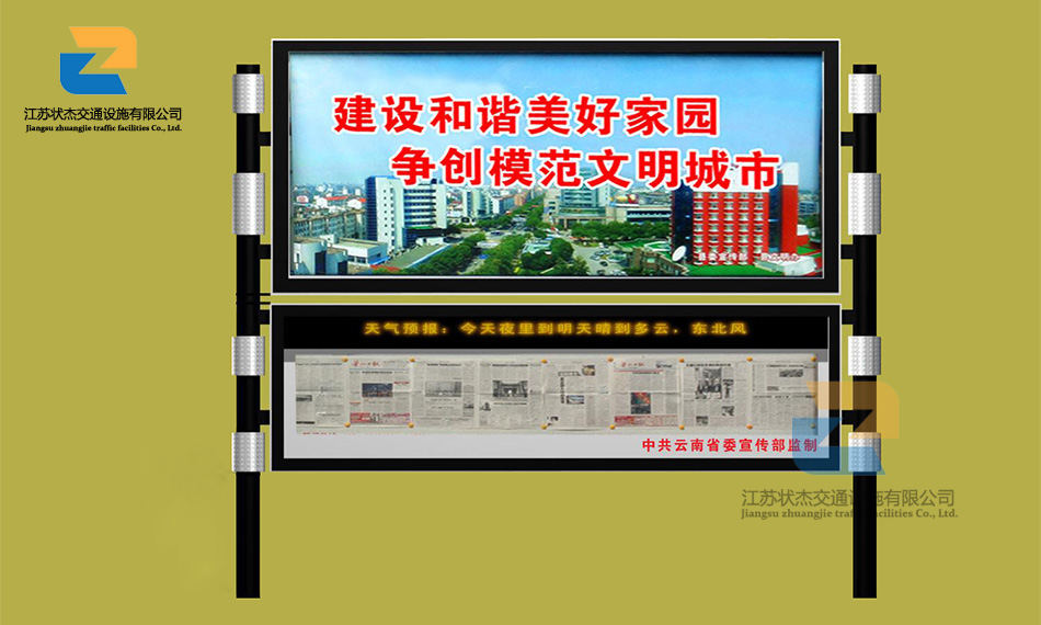 「狀杰科技」注冊(cè)資本2880萬元,始建于2008年,是江蘇宿遷專業(yè)的宣傳欄生產(chǎn)廠家,擁有 12 年廣告燈箱行業(yè)制作經(jīng)驗(yàn),產(chǎn)品案例遍及石家莊、廈門、大連、合肥、南寧、蘭州,烏魯木齊、哈爾濱、大連、徐州等60多座城市(點(diǎn)擊藍(lán)色鏈接查看產(chǎn)品案例 http://www.interstateenvironmental.com/case/)。所有產(chǎn)品均支持來圖定制、按需定制,歡迎來電咨詢、到廠實(shí)地考察。